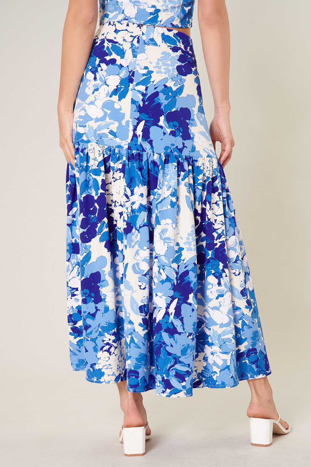 The Gypsum blue floral flouncy Midi Skirt is a stylish and feminine addition to your wardrobe. With its high waist and shirred tiered design, it creates a flattering A-line silhouette that is fitted at the waist and loose at the bottom. Made from a blend of 97% polyester and 3% spandex, it offers a comfortable and stretchy fit. The back hidden zipper ensures easy wear and removal. The beautiful blue floral print adds a touch of elegance and charm to any outfit. Whether you dress it up with heels and a blouse or dress it down with a t-shirt and sneakers, this skirt is versatile and perfect for any occasion.
