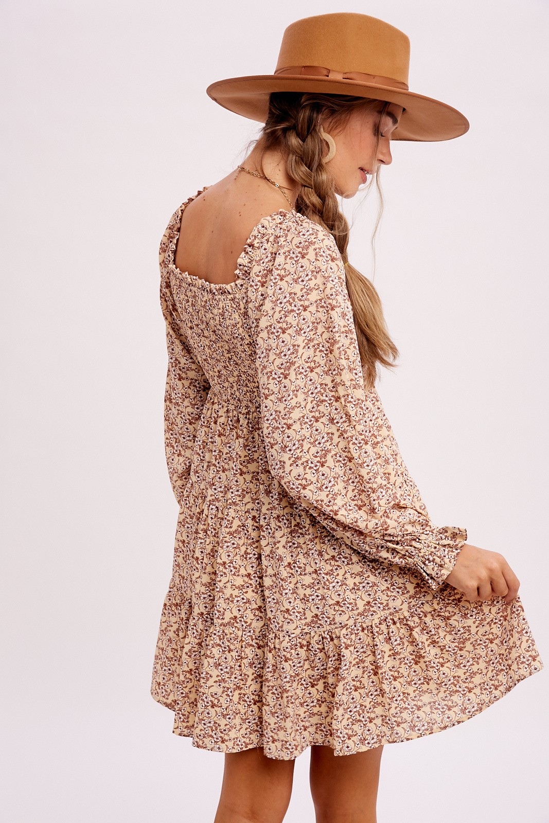Get your romantic feel with this beautiful Natural Floral Printed Squared Neck Tiered Dress! This dress offers classic vintage style with a floral print and ruffle details at the cuffs, neckline, and flounce hem. Crafted from a lightweight fabric that’s sure to move comfortably with you while still looking chic. The top is complete with smocking on the back to give it more of an elevated look. Perfect for weddings or any other special occasions!